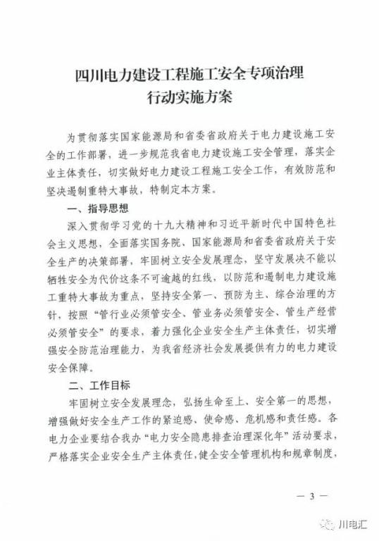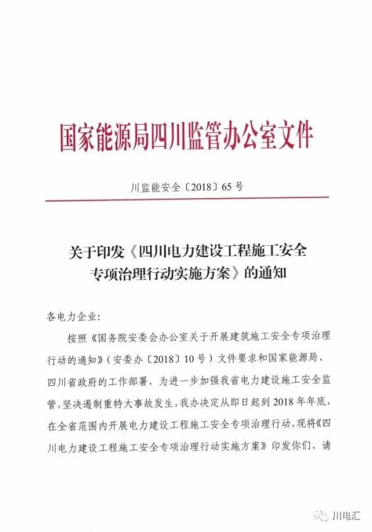 安全生產(chǎn)】關(guān)于印發(fā)《四川電力建設(shè)工程施工安全專項治理行動實施方案》的通知