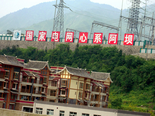 國(guó)家電網(wǎng)心系阿壩,對(duì)災(zāi)后重建投入了大量人力物力,圖為映秀110KV變電站。